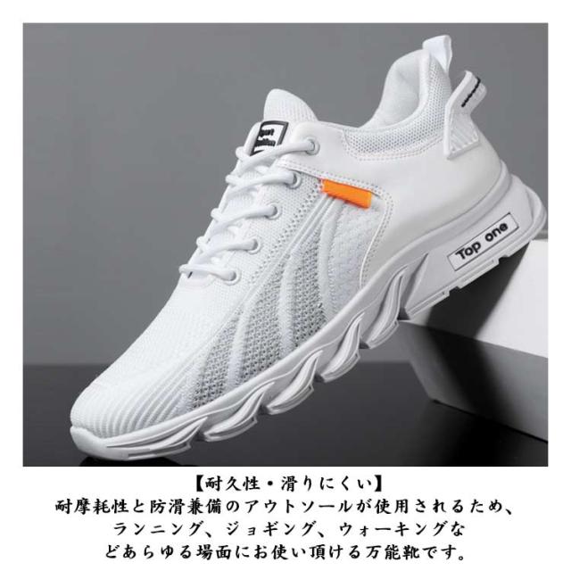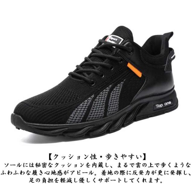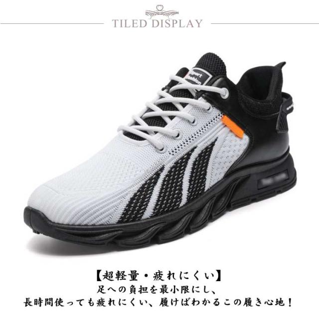 | 【超軽量・疲れにくい】足への負担を最小限にし、長時間使っても疲れにくい、履けばわかるこの履き心地! 【クッション性・歩きやすい】ソールには秘密なクッションを内蔵し、まるで雲の上で歩くようなふわふわな履き心地感がアピール。着地の際に反発力が更に発揮し、足の負担を軽減し優しくサポートしてくれます。 【耐久性・滑りにくい】耐摩耗性と防滑兼備のアウトソールが使用されるため、ランニング、ジョギング、ウォーキングなどあらゆる場面にお使い頂ける万能靴です。 【通気性・蒸れない】通気メッシュと吸汗生地のライナーが採用され、通気性と速乾性が優れて、長時間履いても足元が蒸れずサラサラと快適です。 | |