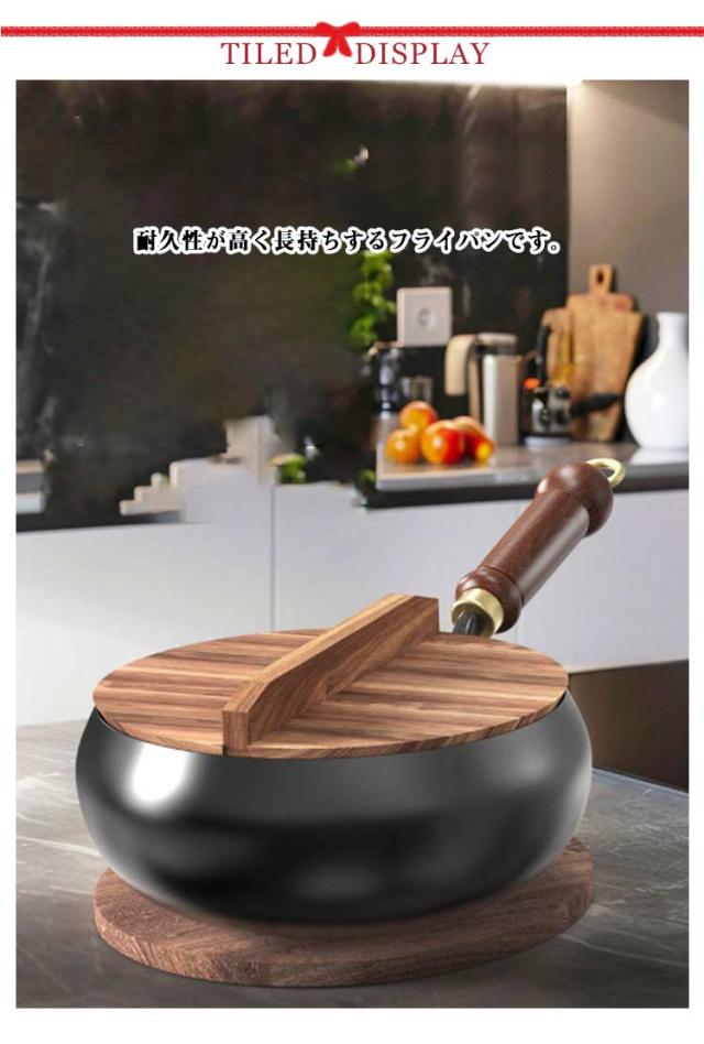 フライパン 鉄のフライパン 木製 誕生日 家庭用 炒め鍋 高温調理 焦げにくい 中華鍋 蓋付き 鉄分摂取 深型 キャンプ プレゼント ギフト 調理道具 新築祝い 深型 結婚祝い 軽量 小型 深型 フライパン