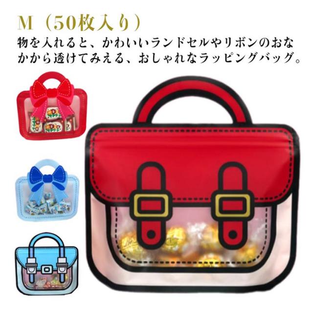 ラッピング袋 ラッピング 個包装 学校 イベント リボン お菓子 ジッパー 50枚入り 自立 クリスマス パウチ 小分け袋 かわいい ランドセル チャック 誕生日 ラッピング バレンタイン 結婚式 パーティー
