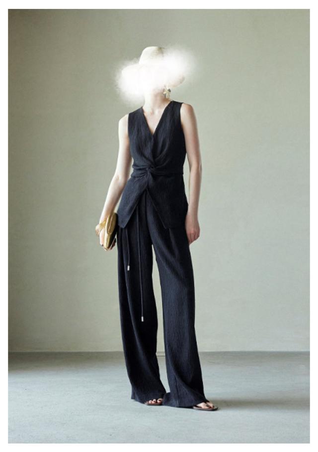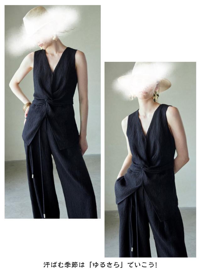 | Iラインですっきり! 縦長効果抜群のワイドパンツセット サラリと涼やか 柔らかなシワ感 アクセサリーや小物を替え着回し! 大人のきちんとスタイルを叶えてくれるセットアップ 単品使いもおすすめ 汗ばむ季節は「ゆるさら」でいこう! | |