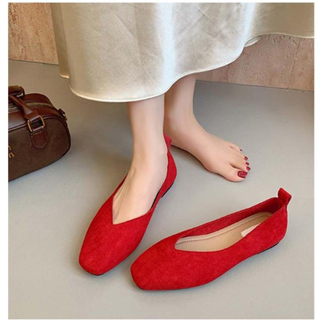 | さっと履けておしゃれに決まる!Vカットスクエアトゥフラットシューズ。 シンプルながらも脚をきれいに見せてくれるディテールが詰まったスクエアトゥシューズ。 フラットシューズとしてもかかとを踏んでバブーシュとしても楽しめる2way仕様。 フラットなのでたくさん歩けます! | |