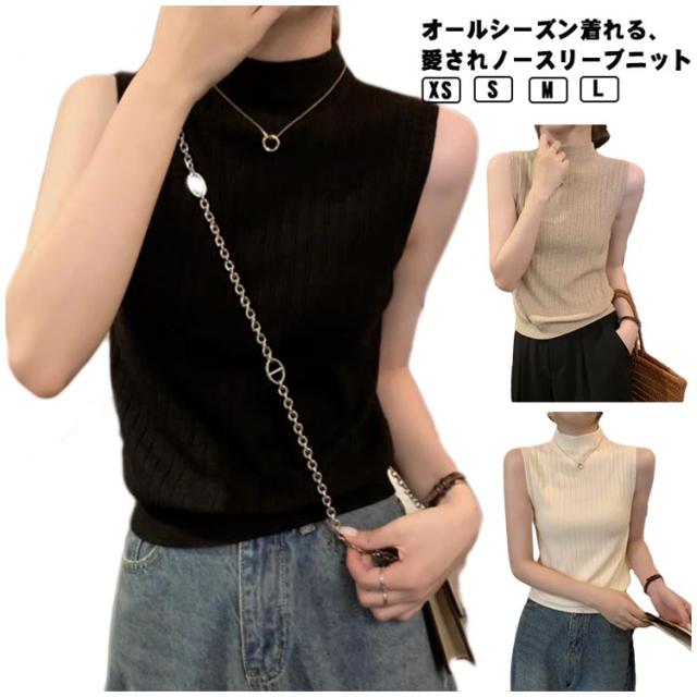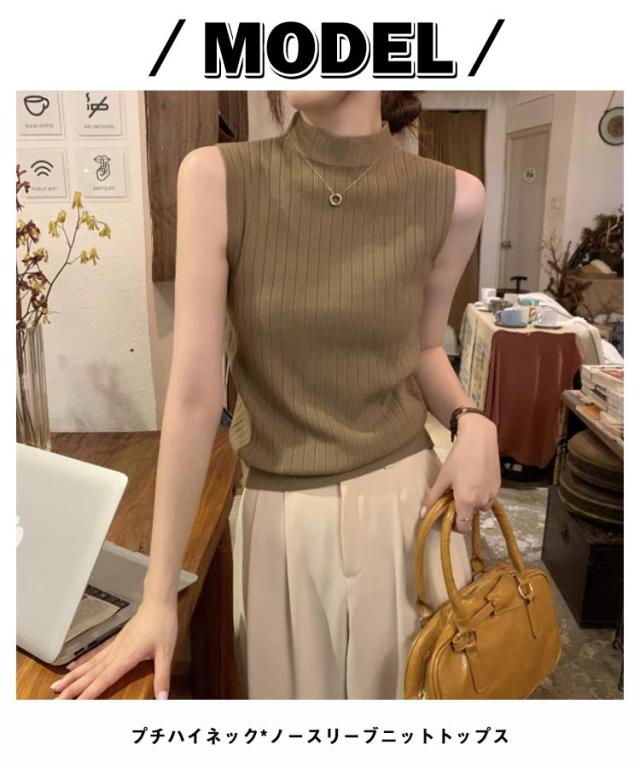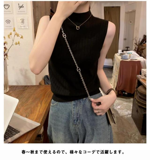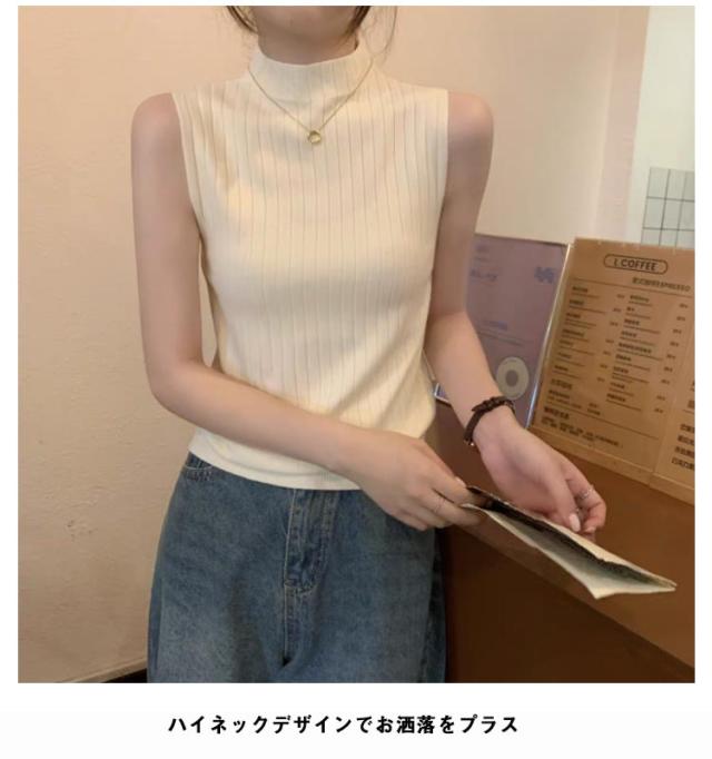 ニットベスト レディース ハイネック ノースリーブニット タンクトップ トップス リブ編み ハイネック 夏ニット 春ニット サマーニット セクシー タイト インナーニット プチハイネック 無地