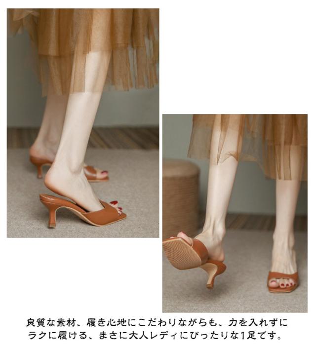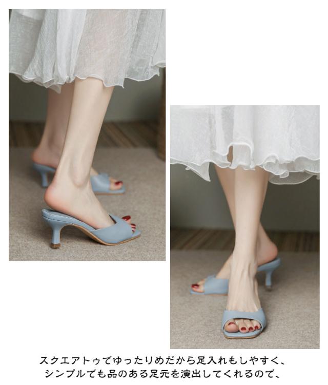 スクエアトゥ 本革 ミュール ハイヒール 本革 靴 脱げない チャンキーヒール 牛革 サンダル レディース 6cmヒール 大きいサイズ 美脚サンダル オープントゥ レザーサンダル 美脚 通勤 オフィス レディースサンダル シンプル きれいめ