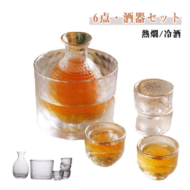 おちょこセット 冷酒グラス 冷酒 6点セット 杯 ガラス製 お猪口 盃 日本酒 おしゃれ 熱燗 シンプル 冷酒器 お猪口 ぐい呑み 徳利 保温 保冷 とっくり 上品 高級感 ゴールド 金 プレゼント ギフト 引っ越し お祝い 来客 父の日 結婚祝い