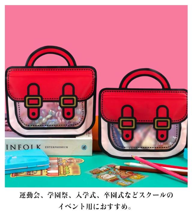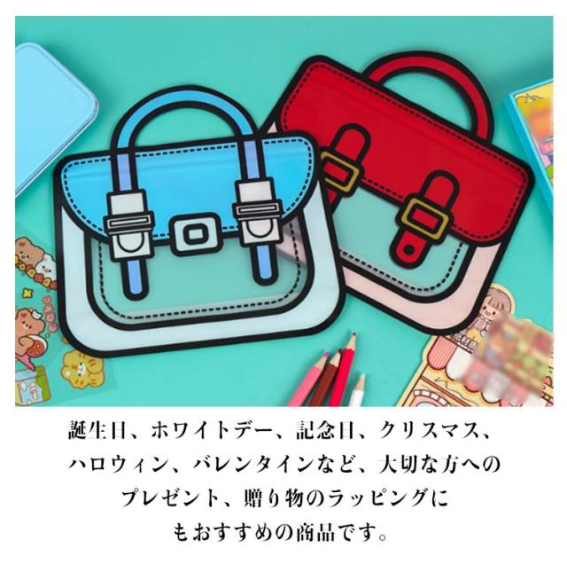 | お子様向けイベントや子供会、保育園や幼稚園などの行事に。 物を入れると、かわいいランドセルやリボンのおなかから透けてみえる、おしゃれなラッピングバッグ。 運動会、学園祭、入学式、卒園式などスクールのイベント用におすすめ。 誕生日、ホワイトデー、記念日、クリスマス、ハロウィン、バレンタインなど、大切な方へのプレゼント、贈り物のラッピングにもおすすめの商品です。 | |