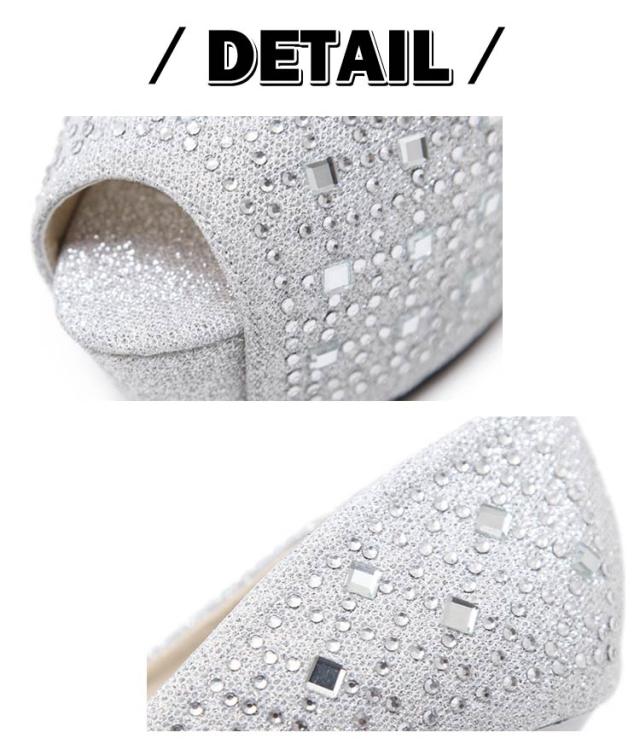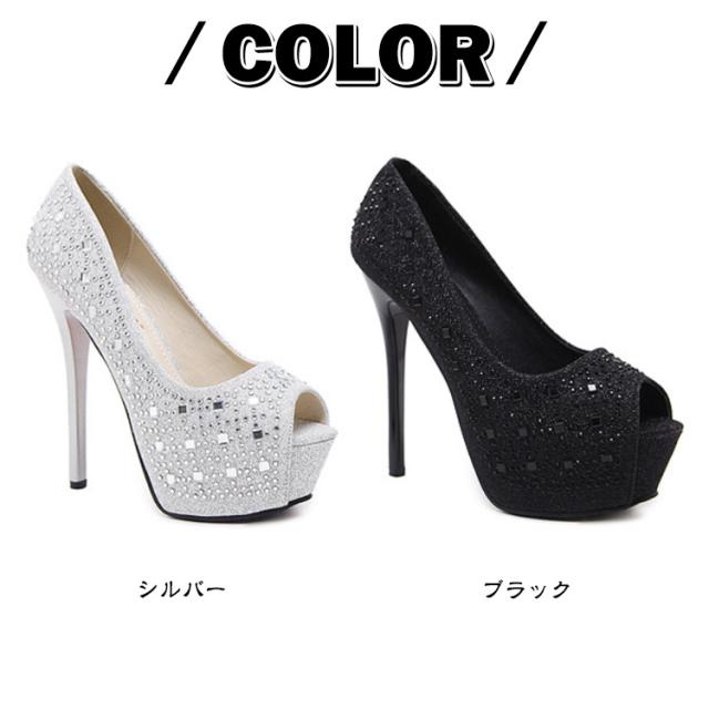 パンプス オープントゥ ヒール 靴 ハイヒール キャバ ラインストーンパンプス レディース 美脚 美脚パンプス 結婚式 13cmヒール ピンヒール 靴 キラキラ ウェディングシューズ キラキラサンダル 21~24.5cmサイズ シンプル キャバサンダル 歩きやすい 厚底 パーティー