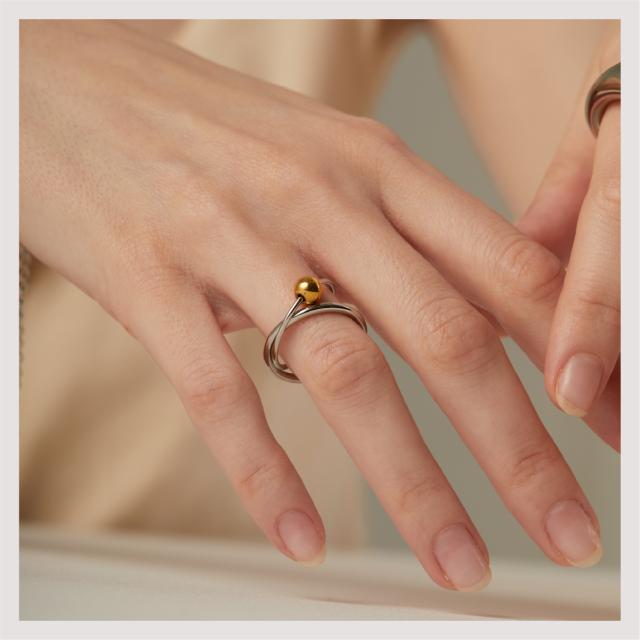 サージカルステンレス リング 指輪 2連 バイカラー 金属アレルギー対応 18Kコーティング 11号相当 レディース 大人 シンプル レディース ミックス シルバーxゴールド 送料無料 プチプライス高見え CRAIFE