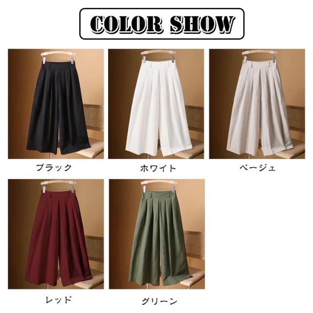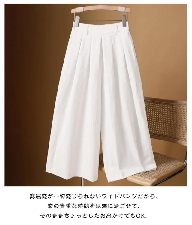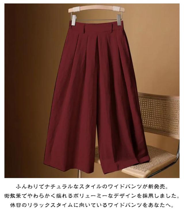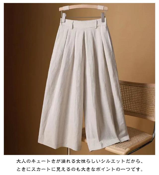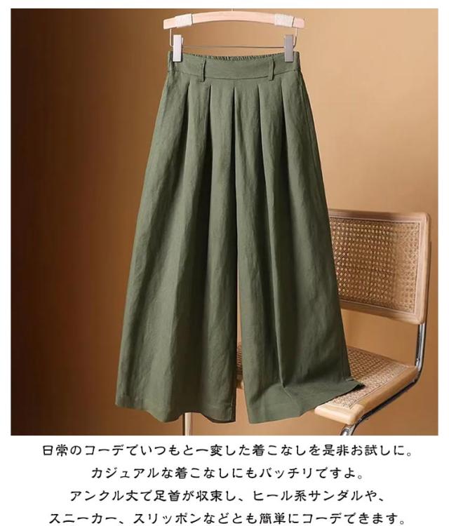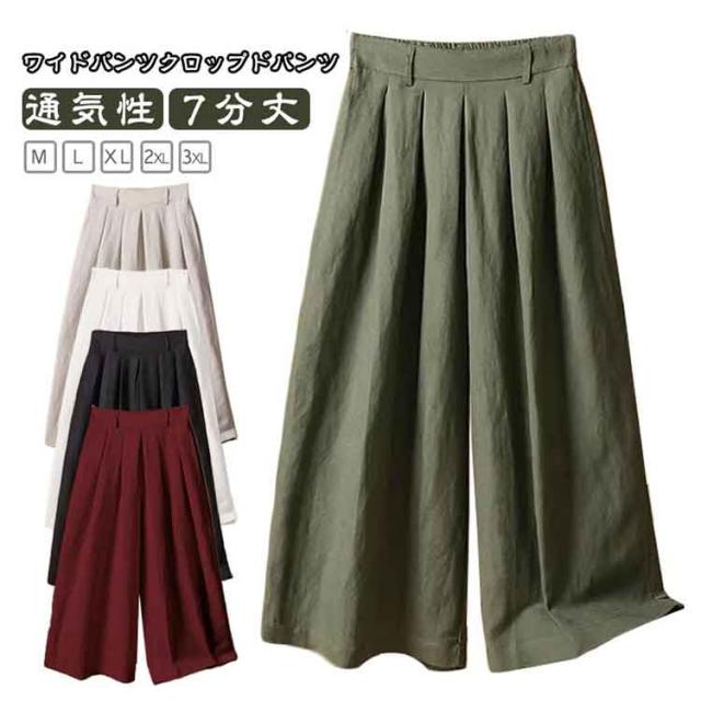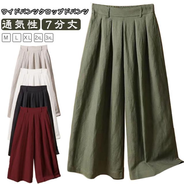 ワイドパンツクロップドパンツ 通勤 体型カバー 夏 涼しい リネン風 ズボン 7分丈 ガウチョパンツ 無地 ボトムス ウェストゴム ゆったり 大きい レディース 大人 春 きれいめ 美脚 脚長効果 秋 ファッション 20代 通学