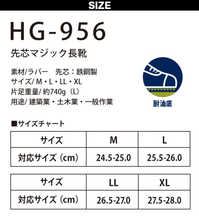 コーコス 先芯マジック長靴 HG-956 安全靴 安全長靴 柔軟性・耐久性・安全性を兼ね備えた長靴 建設・土木・解体作業・農業・畜産・酪農・鉄工・製造・工場作業