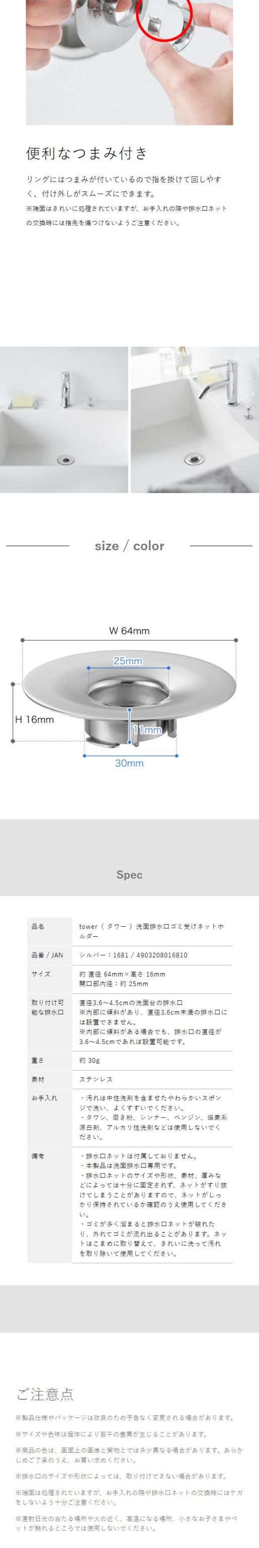 ■ 洗面排水口ゴミ受けネットホルダー タワー 1681