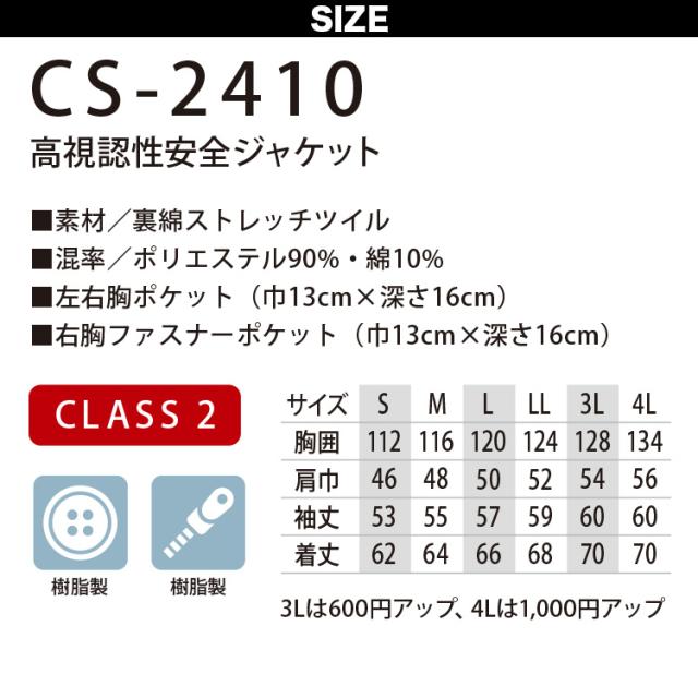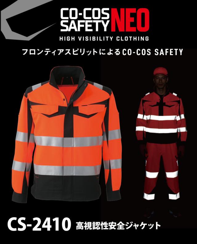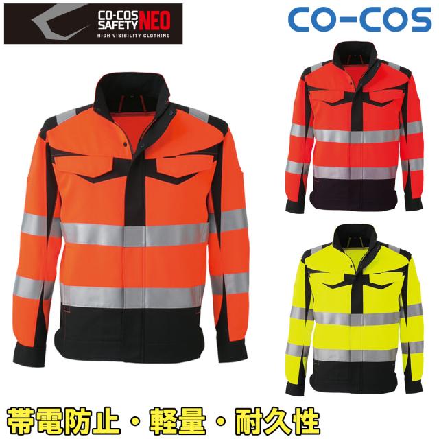 コーコス 高視認性安全ジャケット CS-2410 4L 大きいサイズ 高視認性安全ジャケット JIS T8127 帯電防止素材 反射 軽量 耐久性 夜間作業 イエロー/オレンジ