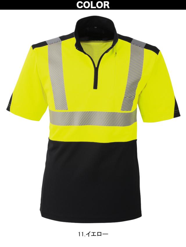 ハーフジップ/ストレッチ/吸汗速乾/通気性/高視認性/安全服