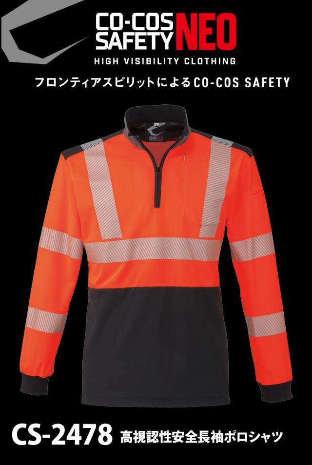 コーコス 高視認性安全長袖ポロシャツ CS-2478
