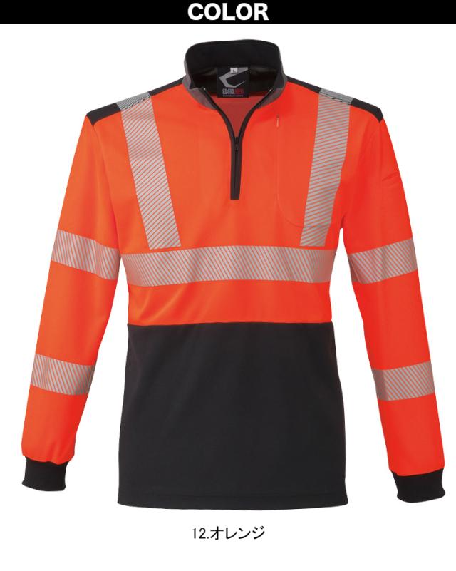 ハーフジップ/ストレッチ/吸汗速乾/通気性/高視認性/安全服