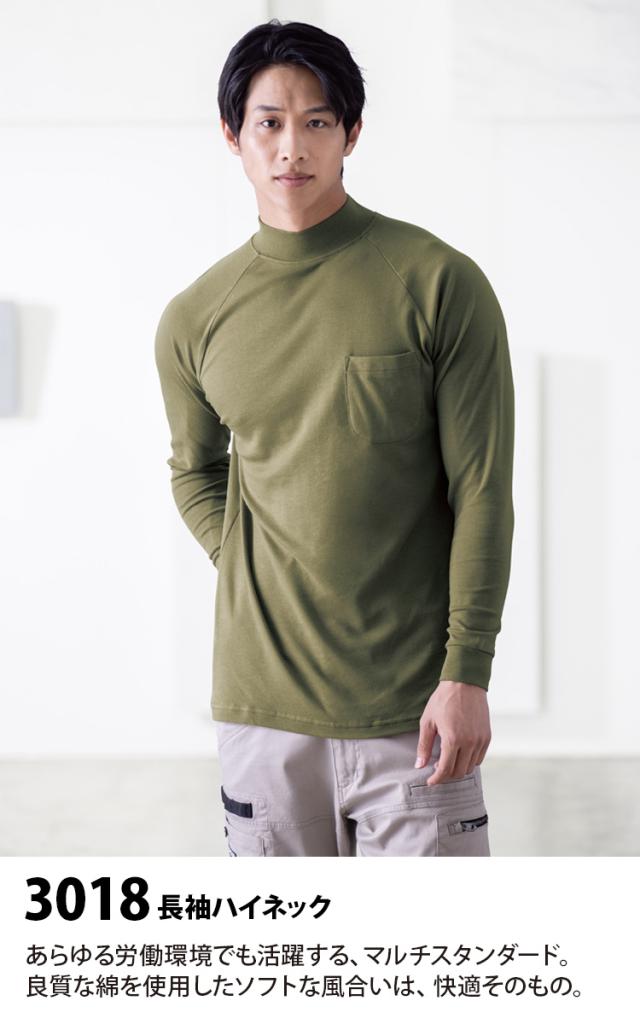 CO-COS 長袖ハイネック 3018 綿100% 良質な綿を使用したソフトな風合い ハイネック 作業服 作業着 コーコス オールシーズン メンズ 男女兼用 レギュラーサイズ