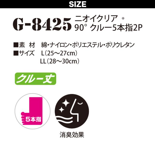 コーコス ニオイクリア90°クルー5本指2P G-8425