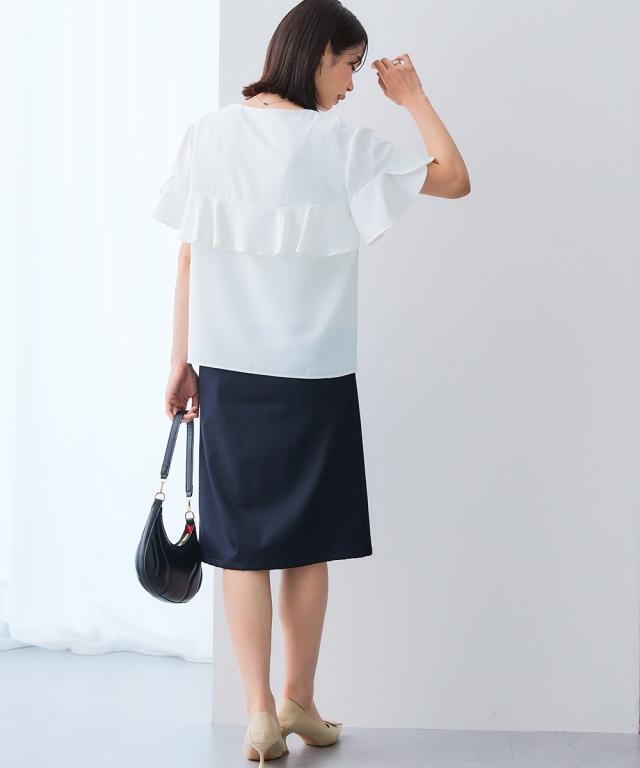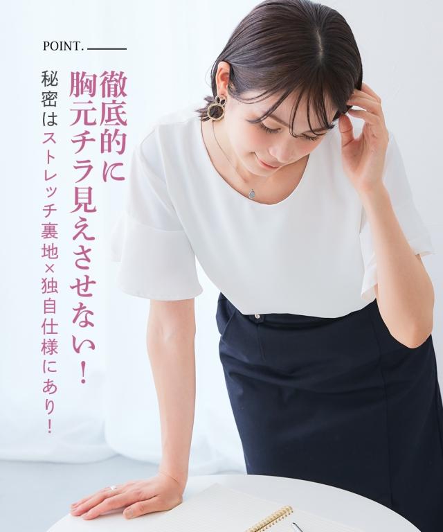 お客様アンケートから開発した胸元チラ見えしにくいブラウス 「衿あきが思っていたより結構あいていて下着が見えてしまう」「かがんだり、深々と礼をした時など胸元が気になってしまう」「ジャケットを羽織った時コーデをバランスよく見せるのにある程度襟元はすっきりしたい・・」そんなお悩みを解決してくれるブラウスです。 ■デザイン 抜け感のあるラウンドVネック仕様ですが胸元はストレッチ裏地でチラ見えしにくい。 バックに施したラッフル使いがエレガントで高見え効果 ■素材 インナーはスポーツ系のとてもストレッチがきいたカットソー素材を使用独自の仕様で体にぴたっとくっついて衿から胸元や下着が見えるのを防いでくれます。生地の厚みやとろみ感にもこだわって選定した素材感。しわになりにくく、カットソー裏地は接触冷感起毛もあります。ネットに入れて洗濯機洗いもできるのでお手入れもしやすく、おすすめのアイテムです!! 〜働く服〜 nissenの通勤服専門ブランド。 仕事の日、休日、イベントの日まで、 働く女性の毎日を商品やコンテンツを通して、 自分らしく快適でいられる“働く服改革”をサポートします。