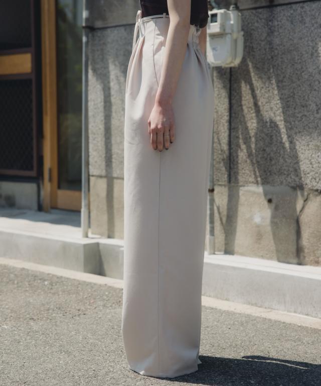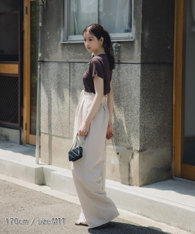 【高身長な方向け】ハイウエストデザインで足長効果ばっちりなタックワイドパンツ ■デザイン ・通常のパンツよりハイウエストに設計しています。・トレンド感あるウエストリボン付き。リボンは結んでも、結ばず垂らした状態でも可愛いです。・フロントタックデザイン。立体感を出してスタイル良く映えるシルエットに。・前ファスナー開きで着脱もらくちん。・しっかり長めのフルレングス丈。 ■素材 ・やや肉厚のツイル素材を使用。・真夏以外シーズンレスでご着用いただけます。・アイボリーのみ裏地付き。 ■おすすめのスタイリング ハイウエストデザインを活かしたコーディネートが可愛い すっきりジャストサイズのトップスを合わせるとスタイルが映えてメリハリ感あるコーディネートに仕上がります。高身長さんだからこそ着こなせるパンツです