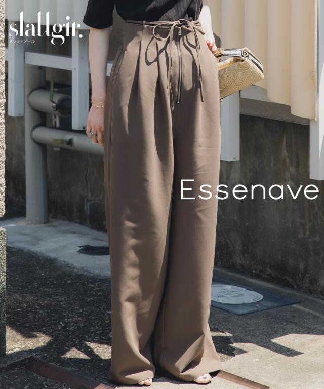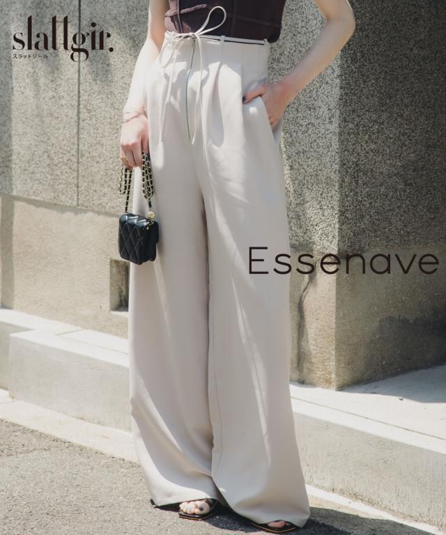 ワイドパンツ トールサイズ レディース 高身長 リボン付ハイ ウエスト タックワイド パンツ Essenave 夏 大きいサイズ ゆったり | LL/3L | ニッセン nissen