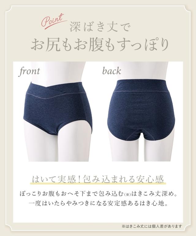 ウエストカシュクール仕様でお腹らくちん&すっきり見え ■ウエストらくちん ウエストは生地を折返し&フロントはカシュクール風で締めつけないかららくちん。 ■おへそまですっぽり(※)の深ばきタイプ はきこみ丈が深めでぽっこりお腹も包みこんで安心感のあるはき心地。 ※はきこみ丈には個人差があります