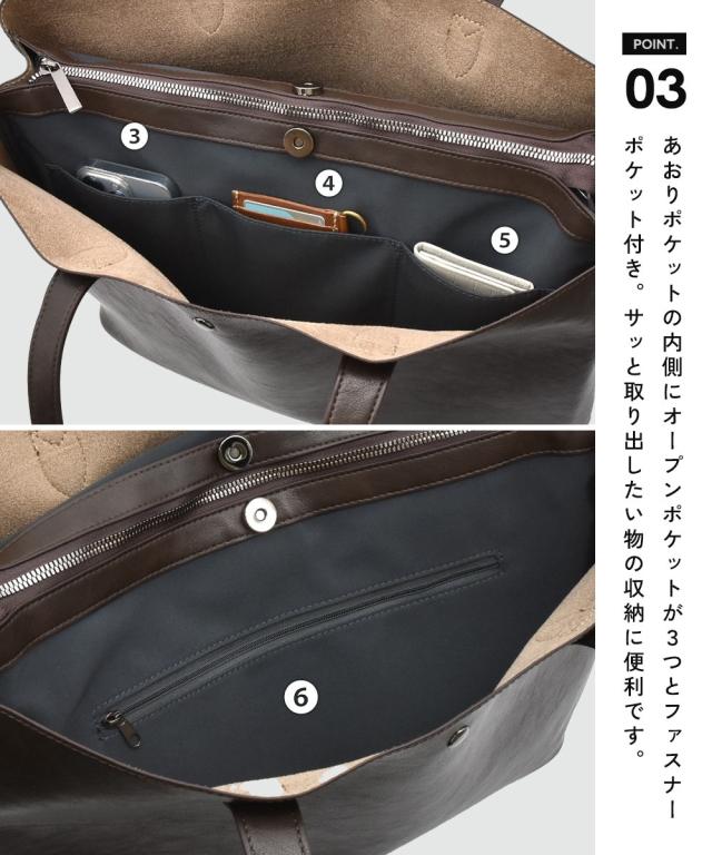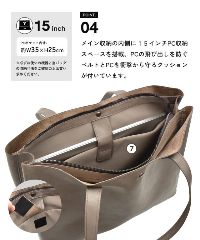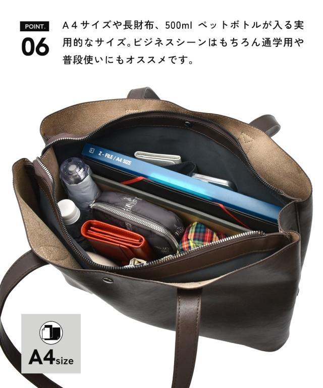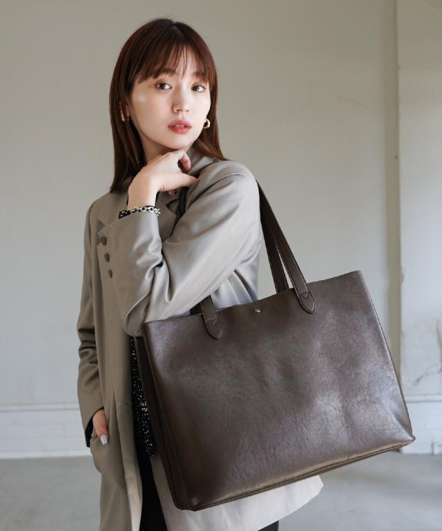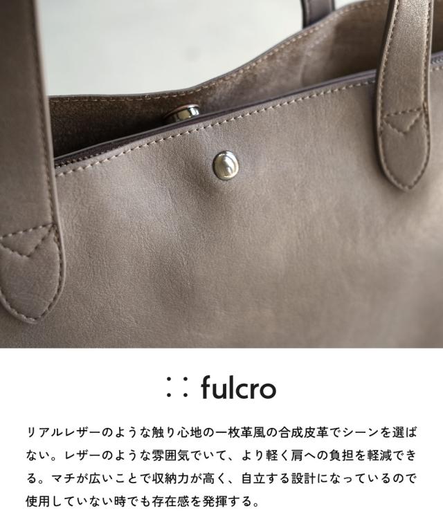 美しい曲線を生かした、洗練されたデザイン。fulcro(フルクロ)の「R]シリーズの合皮素材を使用したA4サイズのファイル対応の少し大き目サイズ。荷物が多い派の方でも使いやすい13Lの容量も嬉しい ■デザイン fulcro(フルクロ)の「R」シリーズの一つトートバッグは、流れるようなラインと直線の混じったシンプルなデザインです。 合皮のツヤ感、質感もきれいで上品 本革のようなきれいな素材感を引き立たせてるため、すっきりとした仕様に仕上げられています。