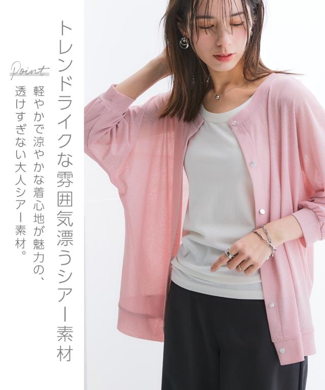 カーディガン レディース ひんやり涼しいシアースラブクルーネック7分袖ゆる UVカット 接触冷感 有 夏 羽織り 冷房対策 | S/M | ニッセン nissen
