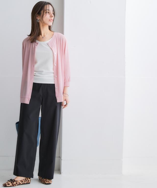 ひんやり涼しいシアースラブクルーネック7分袖ゆるカーディガン(UVカット・接触冷感)