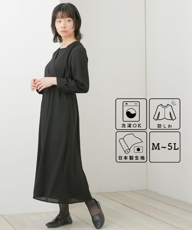 喪服 礼服 ブラックフォーマル レディース 日本製生地使用 洗える防しわカシュクール風 デザイン ワンピース 有 〔Neina〕 春 夏 秋 冬 ニッセン nissen