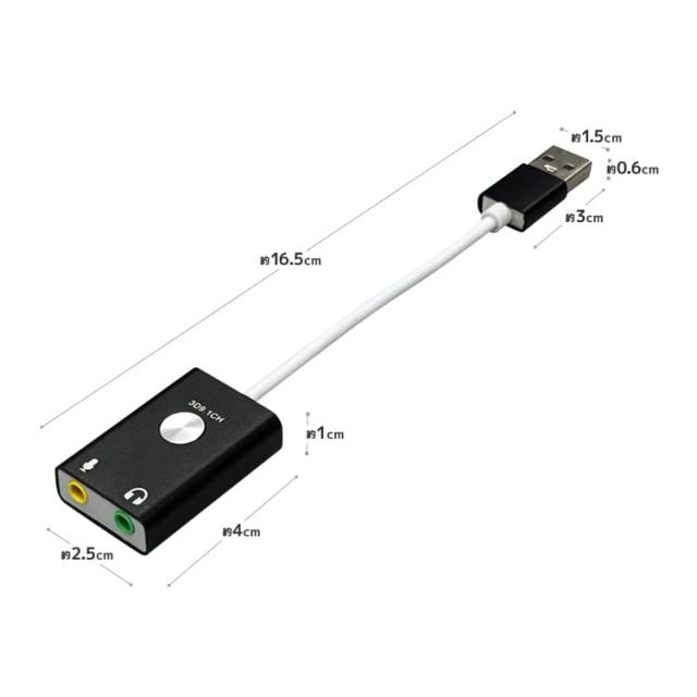 3.5mmオーディオ出力入力をUSBポートで利用できる有線サウンドカードです。