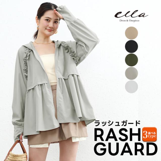 ラッシュガード レディース 紫外線対策 夏 春 UVカット 日焼け対策 ラッシュパーカー 涼しい フリル ギャザー 可愛い パーカー 指穴付き フィンガーホール付き フードあり ドルマンシルエット ポケット付き 長袖 普段着 水着 ビーチ 海 サーフィン アウトドア フィットネス 散歩 スポーツウェア 無地 シンプル ベージュ 肌色 ブラック 黒 ダークグリーン 深緑 グレー 灰色 ホワイト 白 女性 M L XL 9号 11号 20代 30代 40代 10代 yc1306b