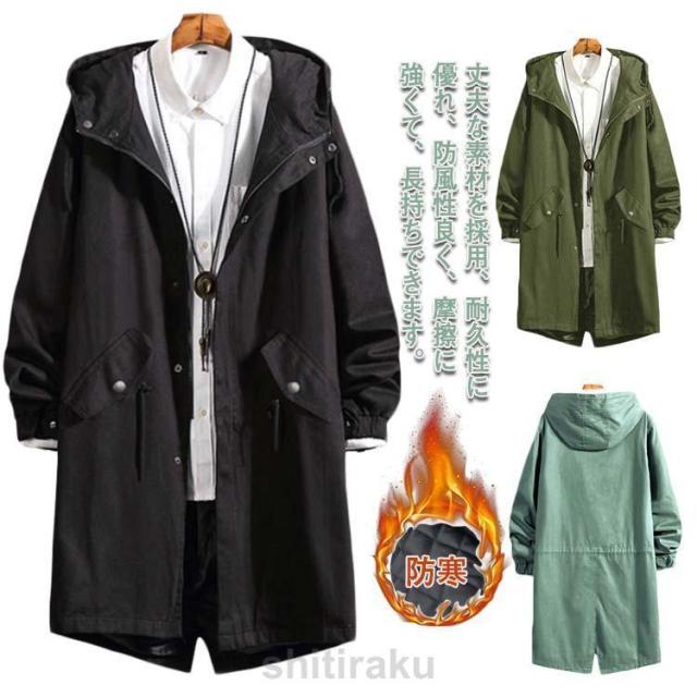 モッズコート 黒 メンズ 春 秋 スプリングコート カジュアルコート ブラック 冬 ゆったり 薄手 ライトアウター グリーン カーキ コットン 防寒