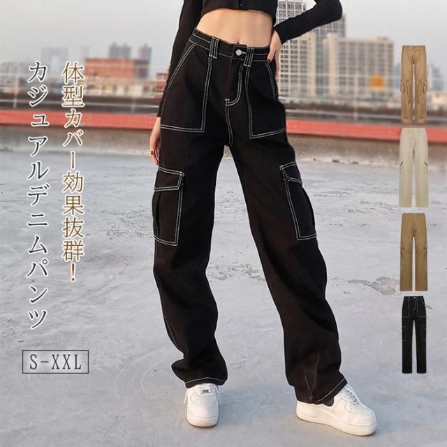 カーゴパンツ レディース ワイドパンツ ルーズ 春 秋 デニム デニムパンツ カジュアル ゆるっと ゆったり おしゃれ ワークパンツ チノパンツ