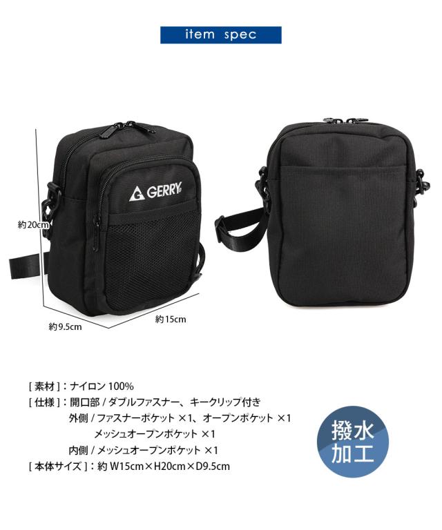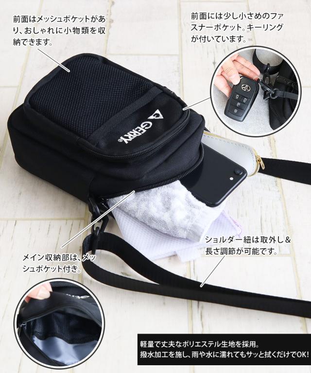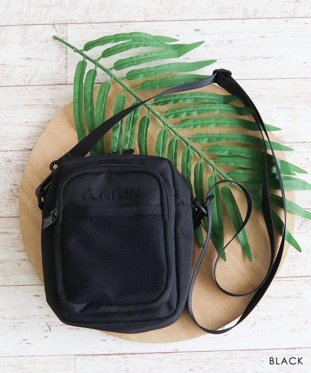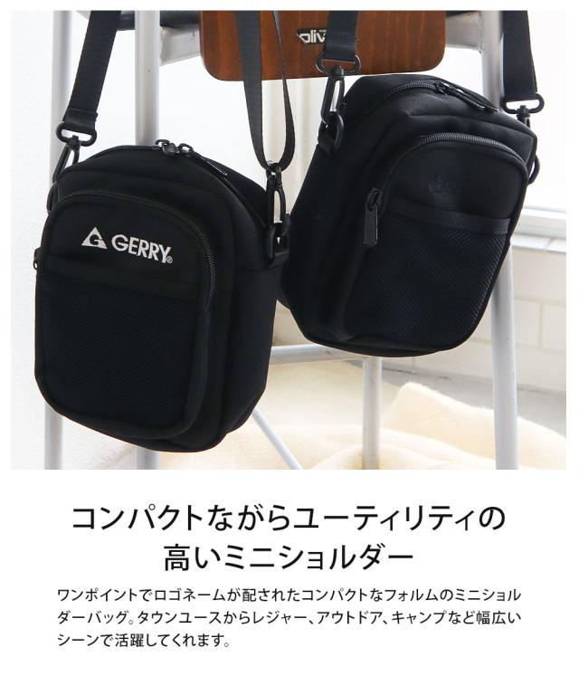 gerry ショルダーバッグ メンズ レディース 小さめ 縦型 2way おしゃれ 撥水 軽量 丈夫 ロゴ 男女兼用 ユニセックス シンプル カジュアル アウトドア フェス キャンプ レジャー 旅行 ポーチ 鞄 バッグ スマホショルダー ミニショルダー 黒 ブラック ジェリー r2181