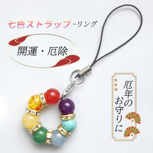 半額セール 天然石 パワーストーン 七色お守り リング形 携帯 ストラップ 七色厄除け 開運グッズ 厄年 贈り物