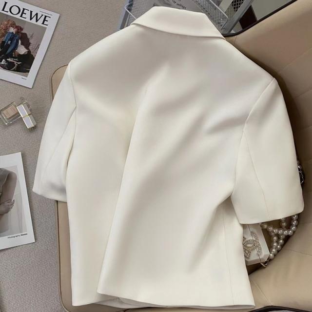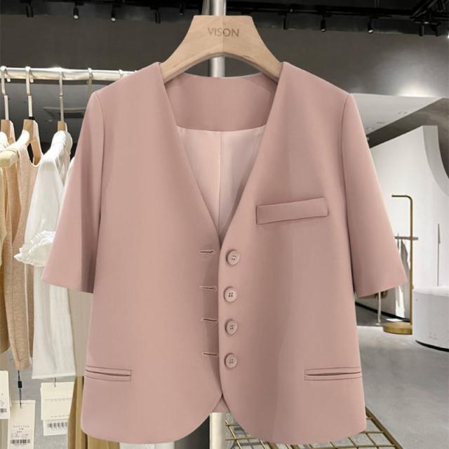 送料無料 ジャケット レディース スーツ テーラードジャケット 半袖 おしゃれ ショート丈 春夏 サマー 涼しい 軽量 洗える 薄手 体型カバー 大人 可愛い フォーマル 通勤 オフィス