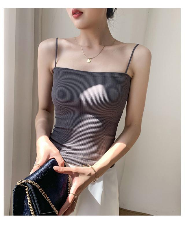ブラトップ カップ付き タンクトップ ノンワイヤー スクエアネック カップ付きインナー ナイトブラ ブラキャミ レディース