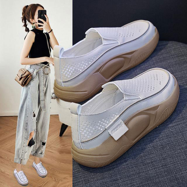 厚底スリッポン 幅広 コンフォートシューズ 外反母趾 レディース スニーカー レザー 革 ローカット カジュアル 20代 30代 40代 50代