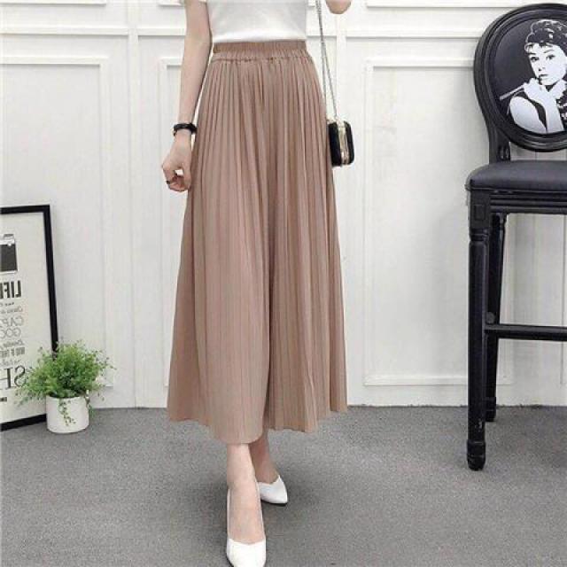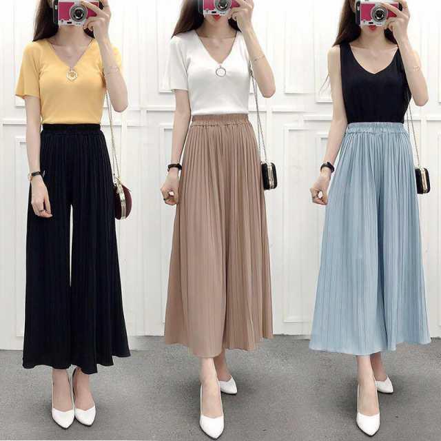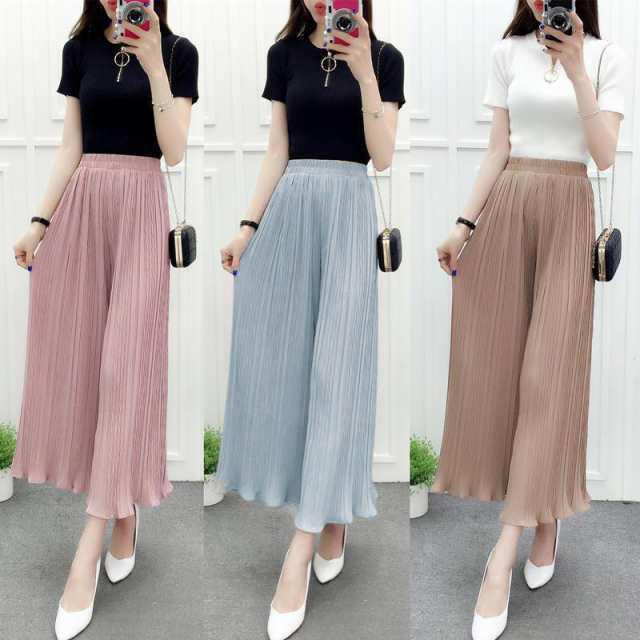 送料無料 フレアパンツ スカートパンツ ウエストゴム ロング丈 ボトムス ひんやり ドレープパンツ 夏 ラフ ウエストゴム 無地 裾が広い ガウチョ パンツ