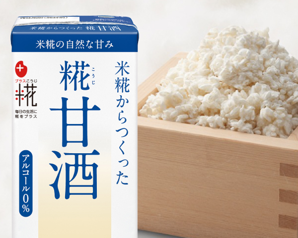 ![]() | 「プラス糀」は、毎日の暮らしのなかに。 たとえば、大豆と塩を混ぜて発酵させる味噌。そこには、糀が欠かせません。ほかにも、醤油やみりん、日本酒など、日本の伝統的な調味料の多くに糀は使用されてきました。 古くから親しまれてきた糀を、日々の生活で手軽に取り入れてほしい。そんな思いから「プラス糀シリーズ」は生まれました。 糀が持つ自然な甘さを商品としてカタチにしたい。そんな女性社員の視点からつくられた甘酒が「プラス糀 糀甘酒」です。 |