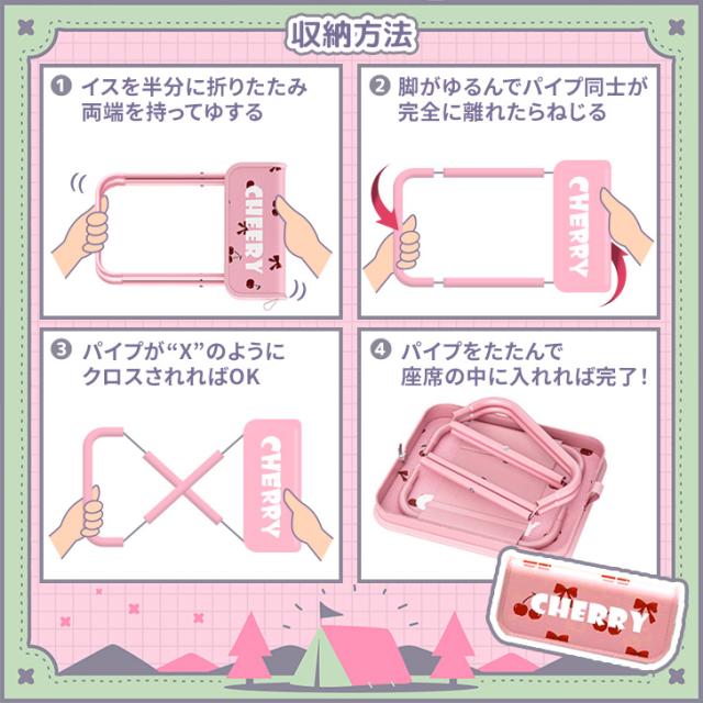 チェリーデザイン折りたたみコンパクトポータブルアウトドアチェア アウトドアチェア 折りたたみ椅子 イス スツール ミニ 折りたたみ 軽量 携帯 持ち運び アウトドア レジャー キャンプ 釣り 登山 キャンプ用品 チェア 椅子 折りたたみイス ローチェア 小さめ 軽い 折り畳み バーべキュー BBQ ピクニック 花火 海 屋外 並ぶ 待機 行列 スポーツ観戦 災害 防災グッズ レジャーチェア キャンプチェア コンパクト コンパクトチェア アウトドア用品 アウトドアグッズ レジャー用品 レジャーグッズ キャンプグッズ ギア インテリア 日用品 雑貨 グッズ アイテム 便利 便利グッズ 小さい ポータブル 持ち歩き パッカブル ポケッタブル ファスナー 収納 ポケット 省スペース 丈夫 ソロキャンプ フィッシング 山登り ハイキング グランピング 公園 山 川 海水浴 ビーチ 砂浜 プール 花火大会 野外 フェス コンサート ライブ 作業 作業用 DIY 庭 ガレージ ベランダ 楽ちん 休憩 スポーツ 運動 野球 サッカー テニス 陸上 ゴルフ 部活 試合 応援 運動会 カメラ 撮影 防災 避難 非常用 デイリー 普段使い 旅行 トラベル プレゼント ギフト 贈り物 新生活 キッズ 子供 子ども こども 大人 チェリー さくらんぼ フルーツ 果物 食べ物 ピンク レディース 女性 女子 女の子 ママ 母 お母さん ラーメン 万博 コミケ 物販 開店前 並ぶ時 待つ時 待機 行列 待ち時間 テーマパーク 遊園地 運動会 体育祭