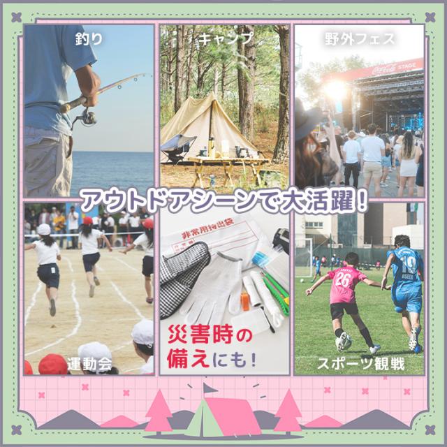 キャンプや釣りなどのアウトドアシーンはもちろん、