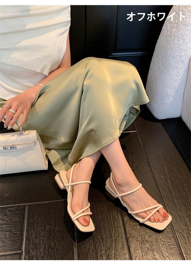 華奢 ストラップサンダル レディース 脱げない ローヒール 痛くない 歩きやすい スクエアトゥ 細ストラップ 華奢 きれいめ おしゃれ シルバー ブラック 黒 ブラウン オフホワイト グリーン 太ヒール 通勤 オフィス