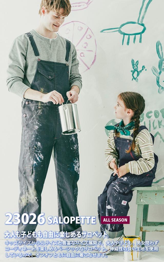 2025年新商品 EDWIN エドウィン サロペット 23026 デニム風 オーバーオール メンズ レディース S-LLまで オールシーズン ストレッチ素材 日本製生地 帯電防止素材 通年 綿ポリエステル 混紡 作業服 作業着 山田辰