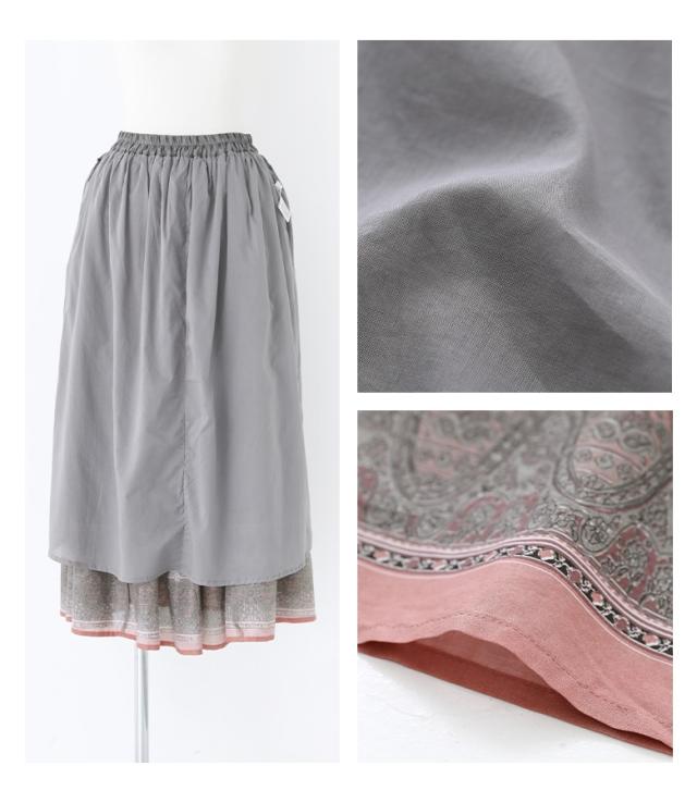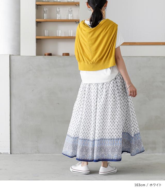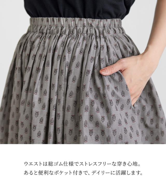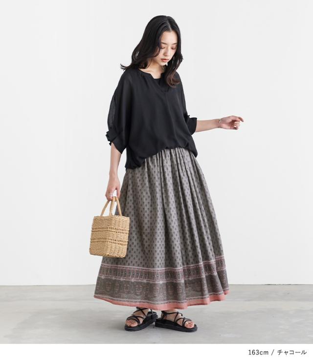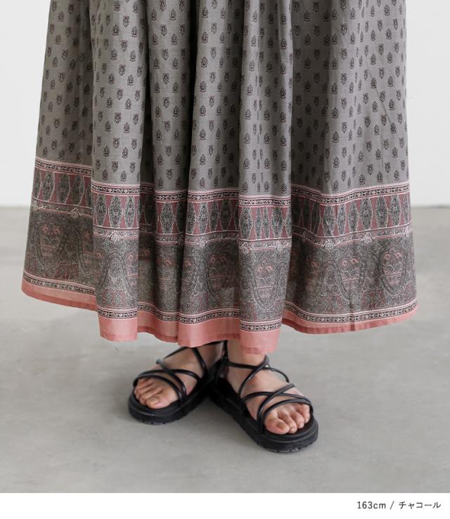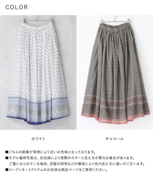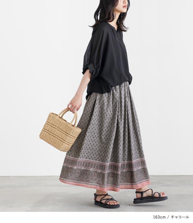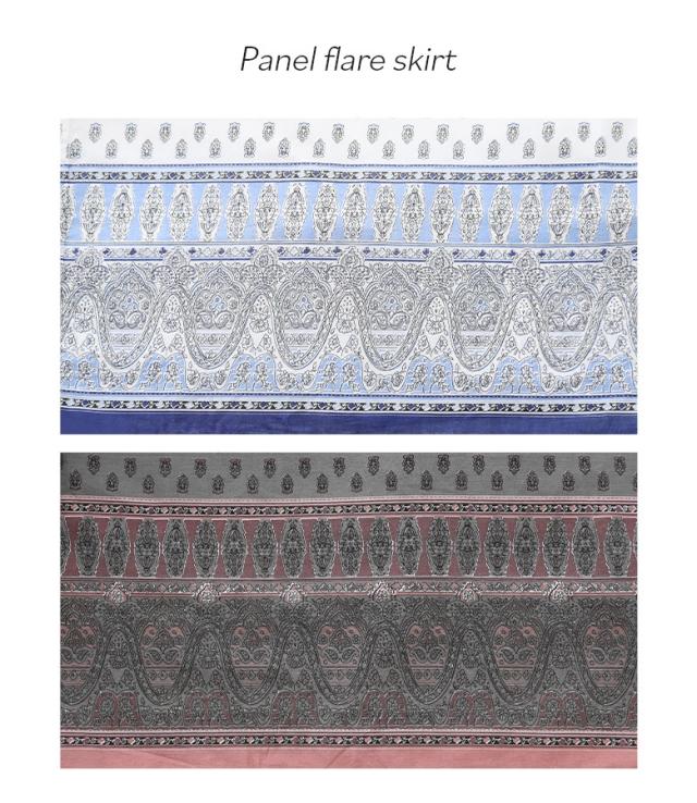 『パネルフレアスカート』【メール便不可】【20】[フレアスカート ロング レディース ボトムス パネル柄 裏地付き ポケット ウエストゴム コットン100% インド綿 薄手 涼し気 カジュアル きれいめ 春 夏]