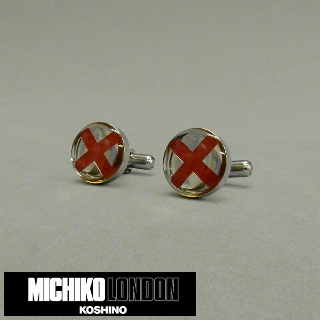 MICHIKO LONDON ブランド カフリンクス/カフスボタン シルバー×レッド 日本製 ミチコロンドン 送料無料 MKC07