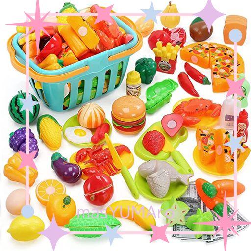 【豪華100点セット内容】食材種類が豊富で、楽しく遊びながら食育を!本物の食物のように、果物、野菜、揚げた料理、調理器具、海鮮、食パン、飲み物、などいろいろあります。日常生活やダイニングシーンを再現し!お子様に料理の楽しみを体験させて、お母さんは子供が台所に入ることを心配無し!