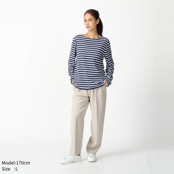 ST.JAMES(セントジェームス)のTシャツが入荷しました☆ダークカラーでまとめた大人らしい表情の長袖Tシャツです。ブランドらしいボーダーが目を惹くキャッチーなデザインに仕上がりました。長めのスリーブでゆったりと着用でき、お出かけにはもちろん、お家でのリラックスタイムにも活躍してくれます。