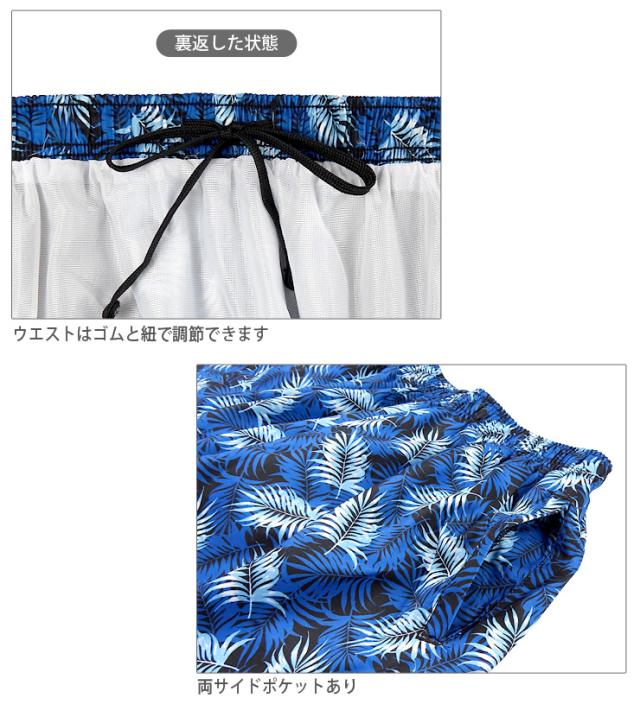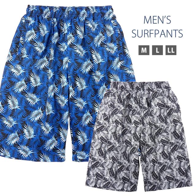 【メール便送料無料】【大きいサイズあり】サーフパンツ 水着 メンズ M L LL M-2510 ブラック ネイビー スイムウェア 海水パンツ 海パン 短パン トランクス ハーフパンツ ショートパンツ 男性 リーフ ヤシ 椰子 総柄 ビーチ リゾート 紳士 黒 紺 青 sw3647