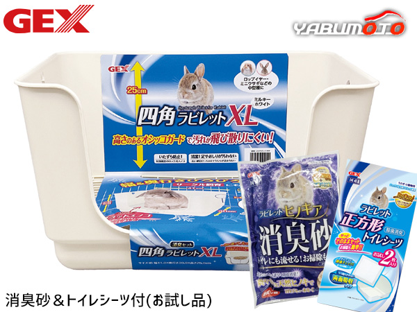 GEX 四角ラビレット XL 消臭セット ミルキーホワイト 幅と奥行きひろびろ サークル飼育にも お試し品 消臭砂付 トイレシーツ2枚付