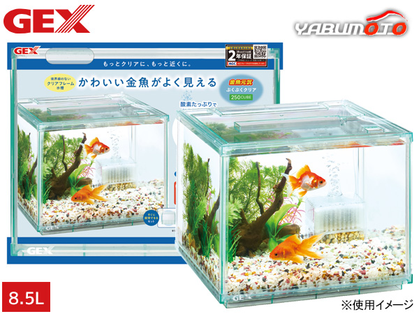 GEX 金魚元気 ぶくぶくクリア 250CUBE 約 幅25×奥行25×高さ20cm 上からも楽しめる&ロータイプのクリアフレーム水槽セット 送料無料